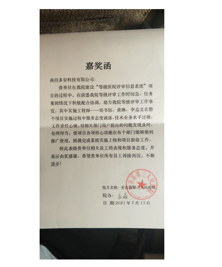 • 多安“等級創建一體化平臺”助力婺城區人民醫院“創二甲”